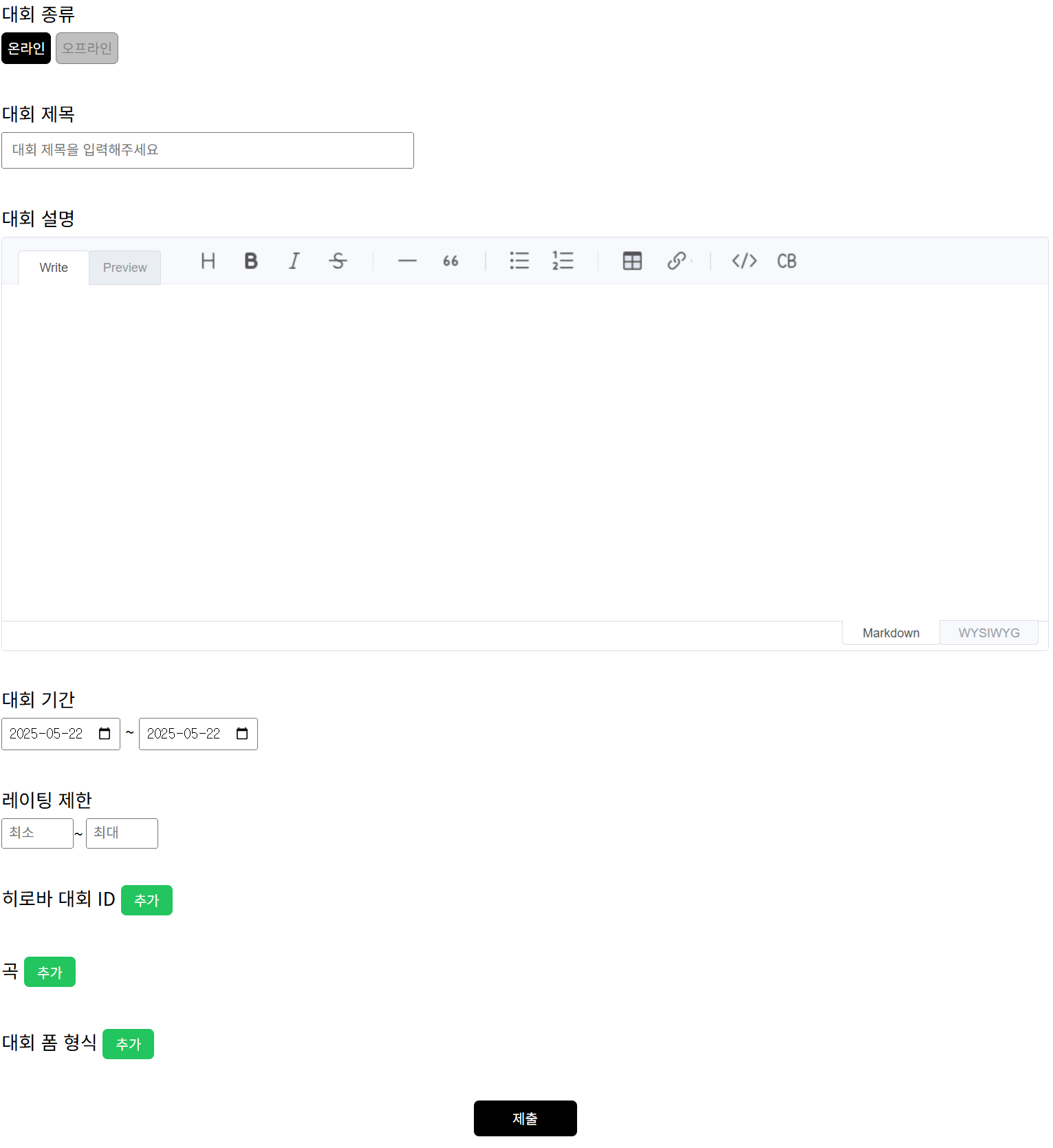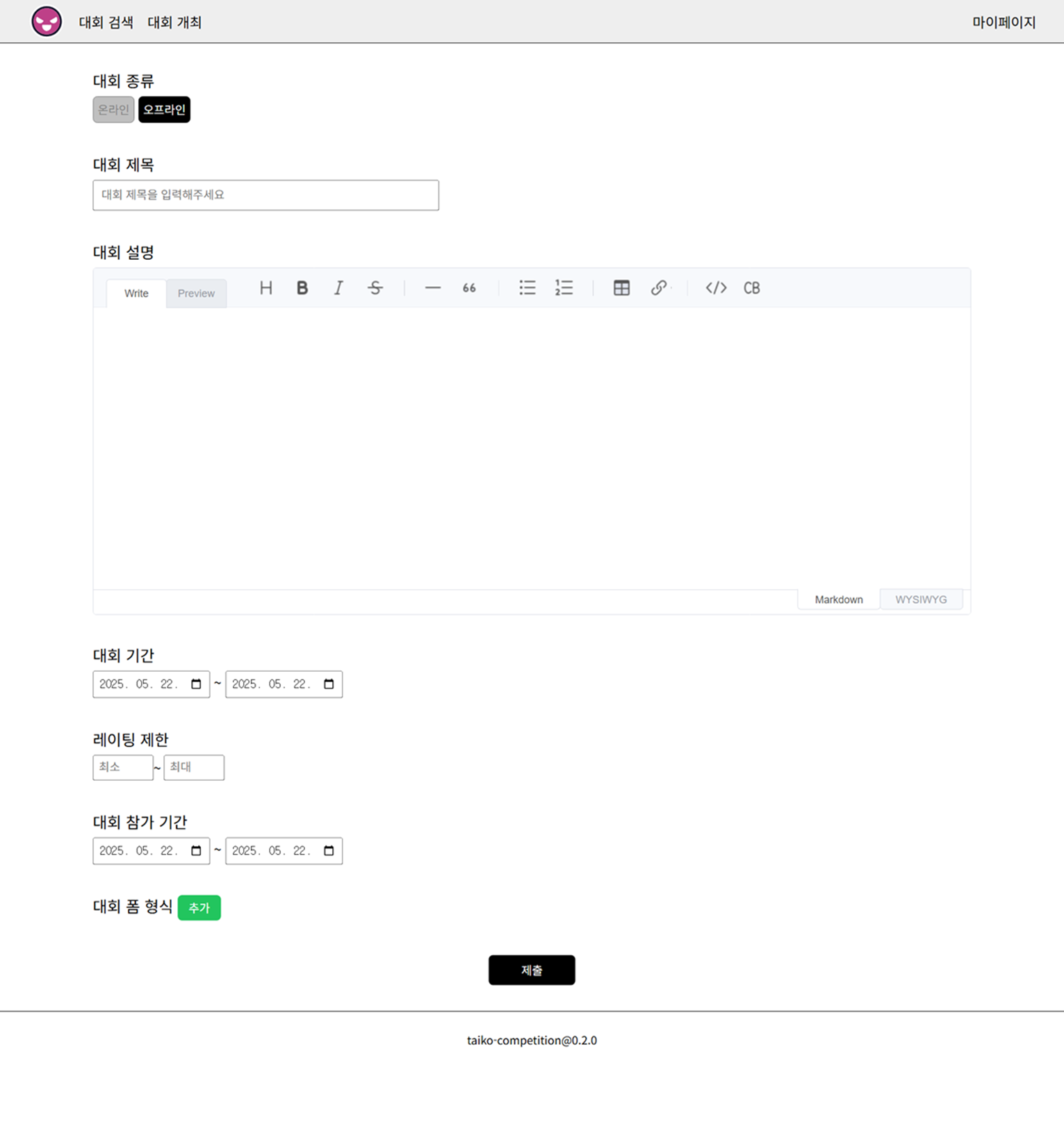 온라인 대회는 대회 개최 페이지에서 개최할 수 있습니다.